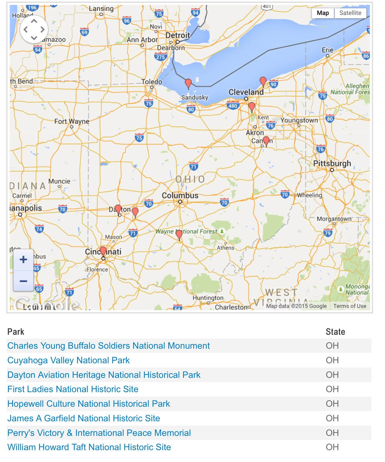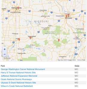 Surrounding states have a handful each. Most that are shown are within 6 hours, requiring at least a long weekend.