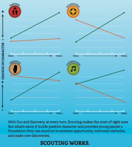 Dr Richard Lerner has been doing a 2.5 year longitudinal study near his school of randomly selected 1800 scouts and 400 non-scouts. He started by studying the boys as the entered scouts. He was setting a benchmark as to whether scouting changes boys character. Dr. Lerner’s final report is out. The summary is available at Scouting Magazine’s website.