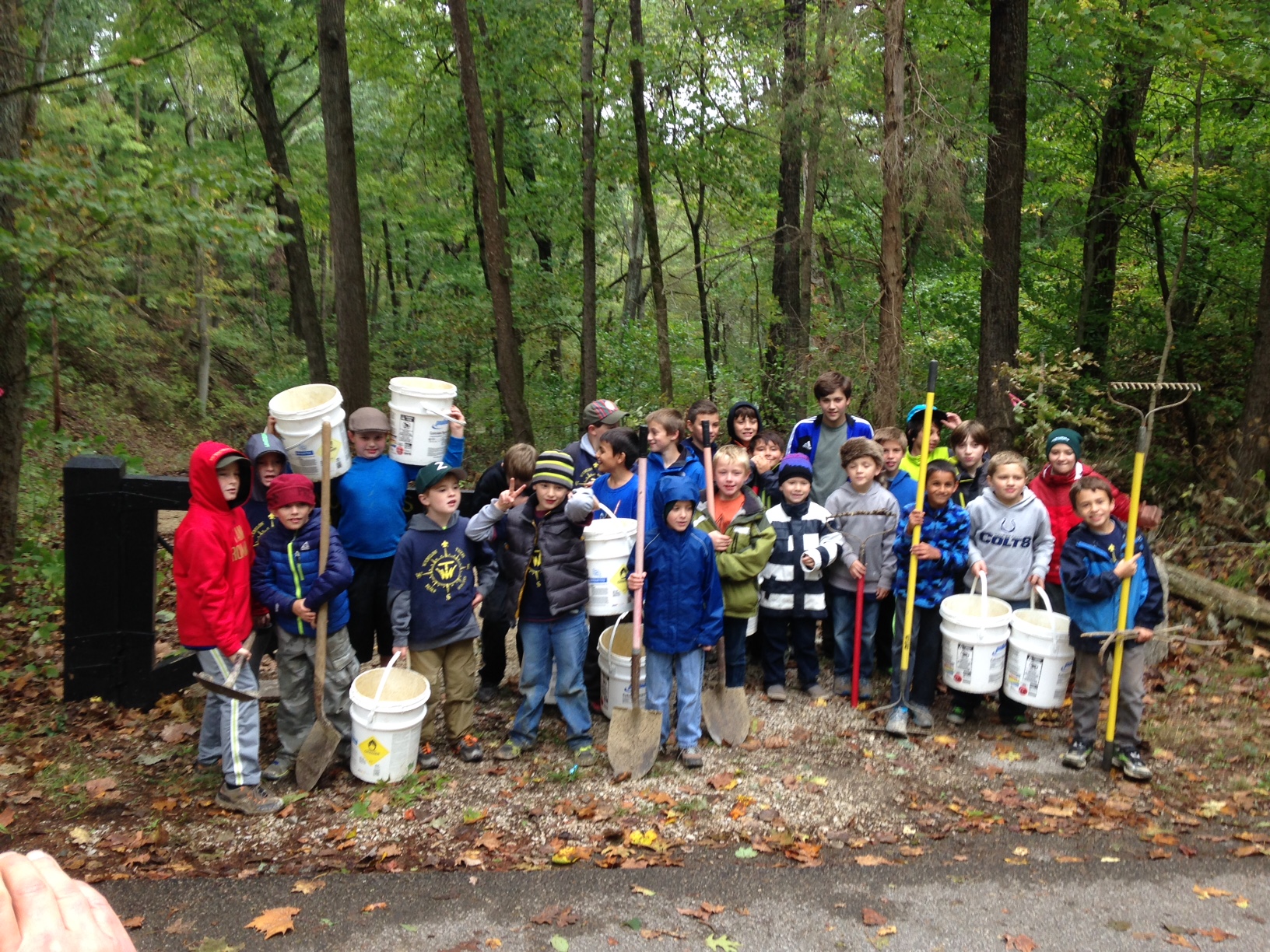 During Zionsville Pack 105 Fall Camporee at Spring Mill State Park, our Cub Scouts completed a service project. We worked with the Park’s Property Manager to determine their needs.We decided on a trail rehab project.